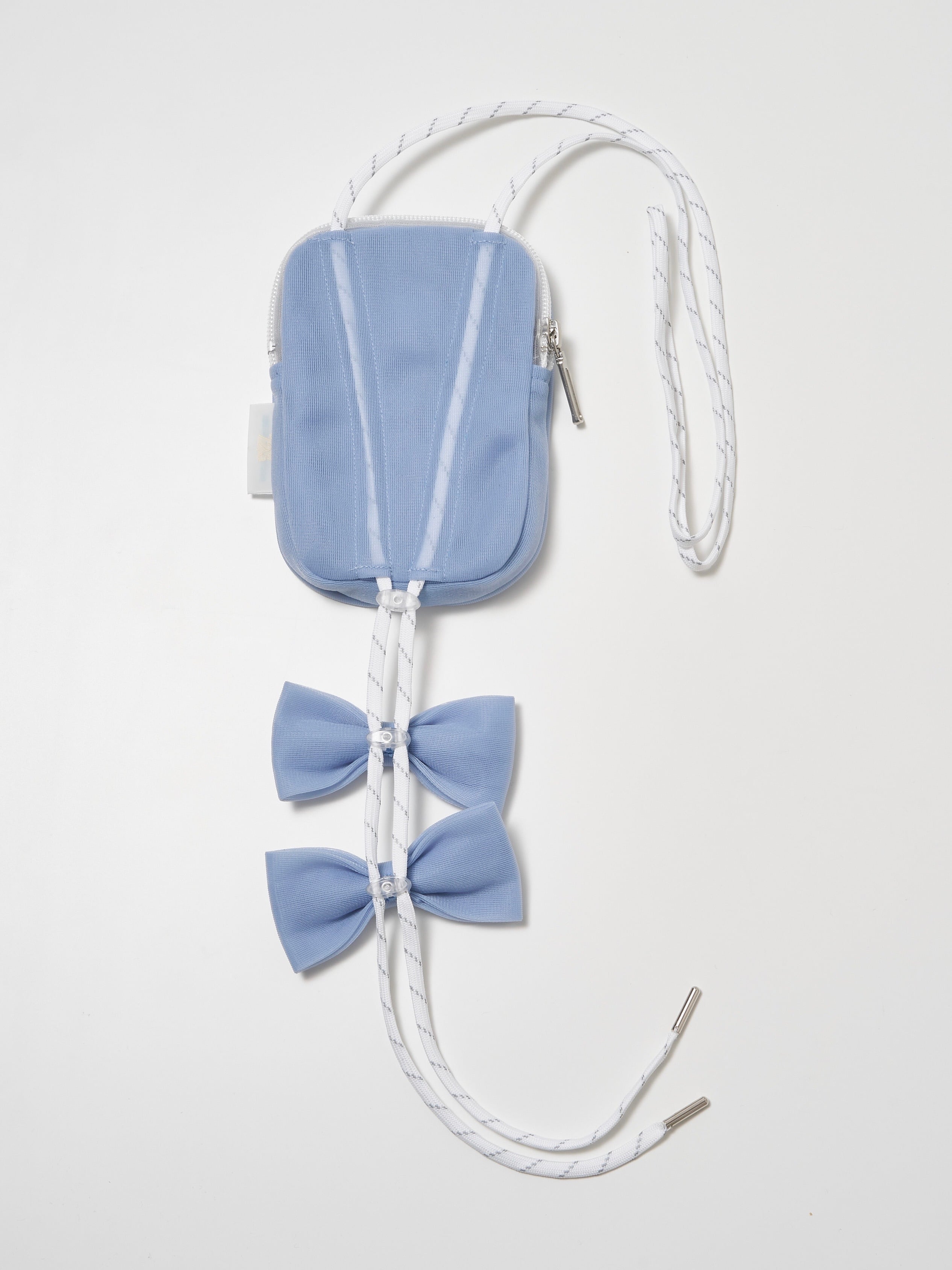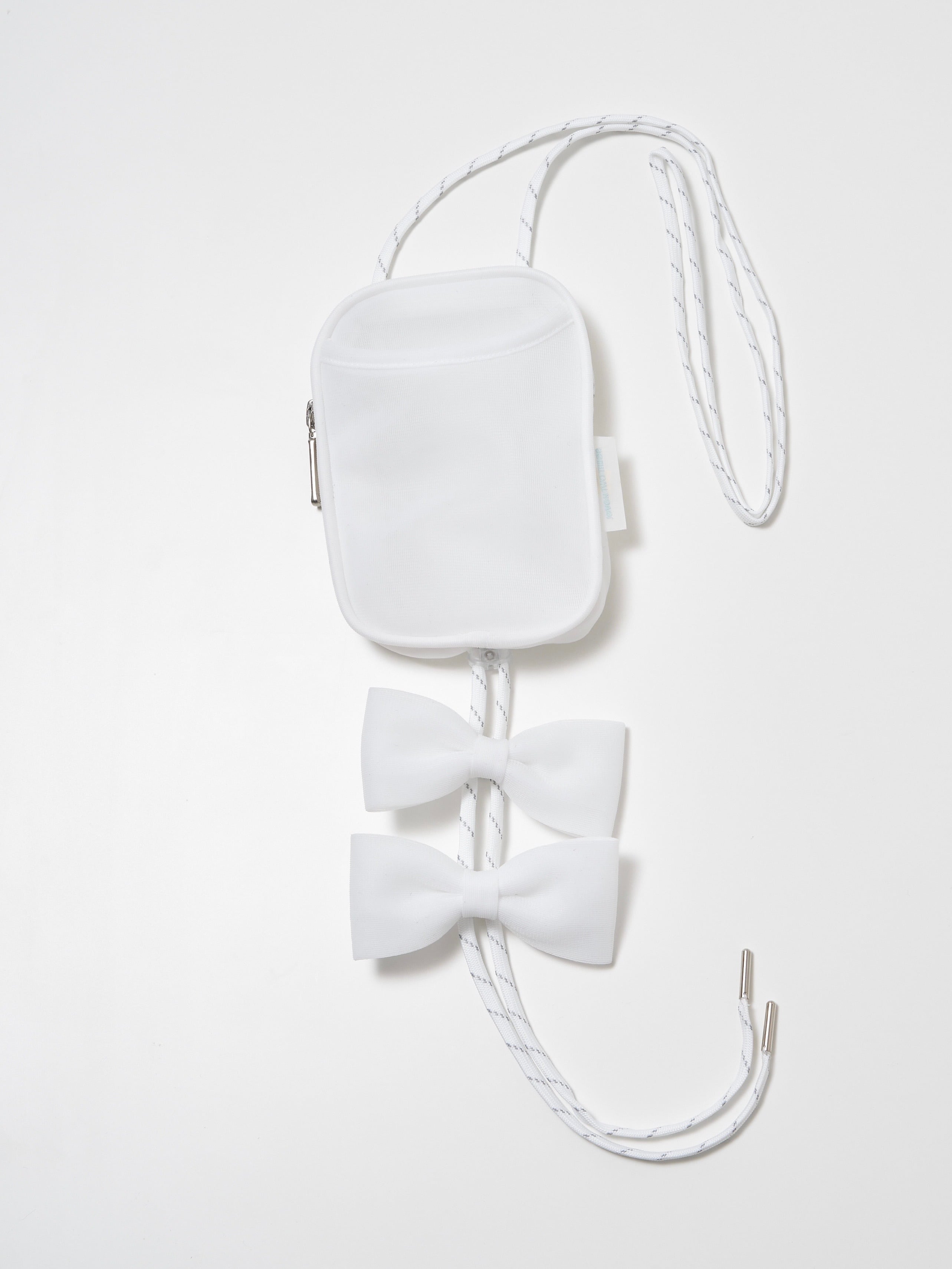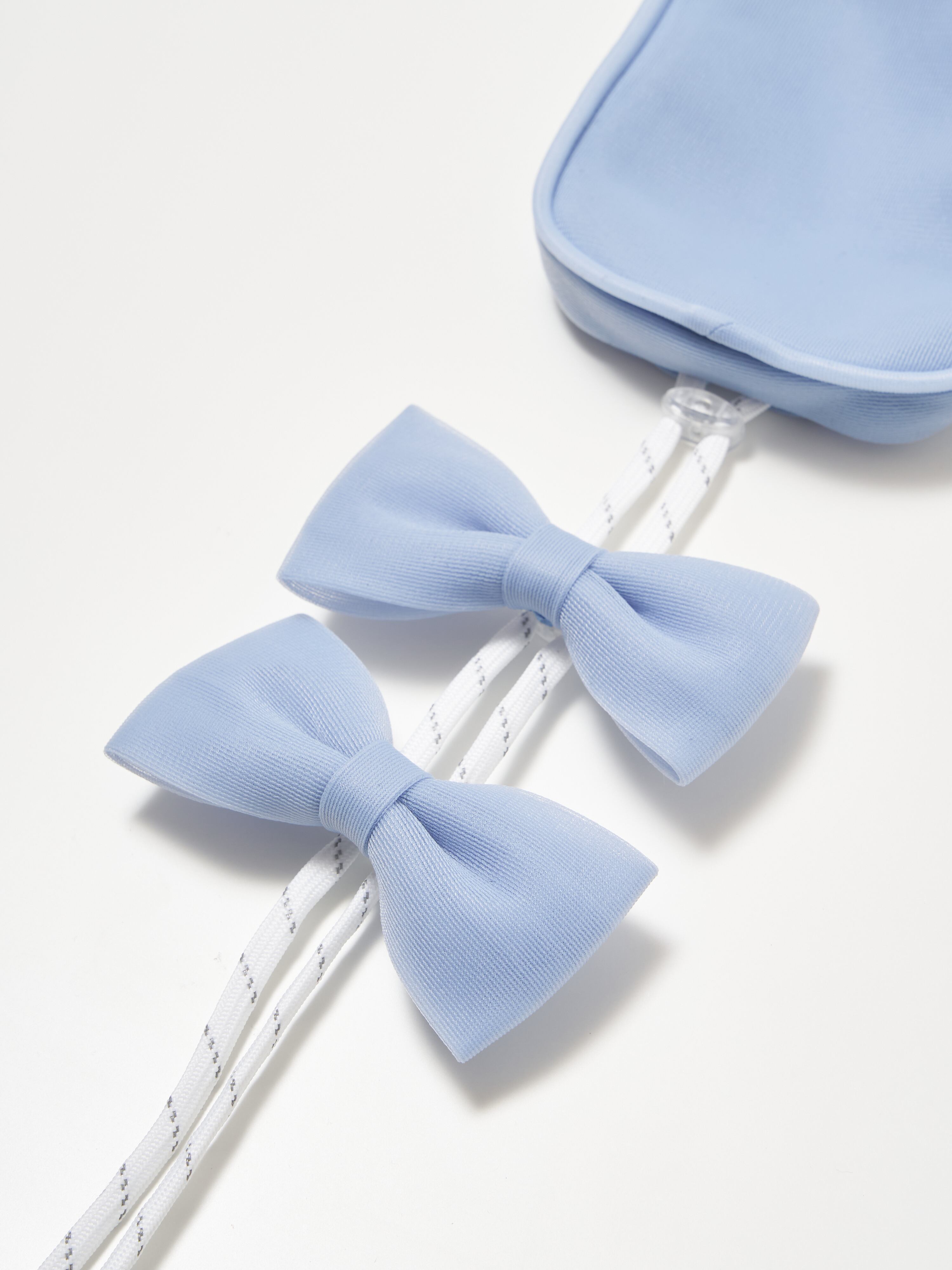 紐の長さは調節可能、お好きな位置にリボンやバック部分を移動できます。